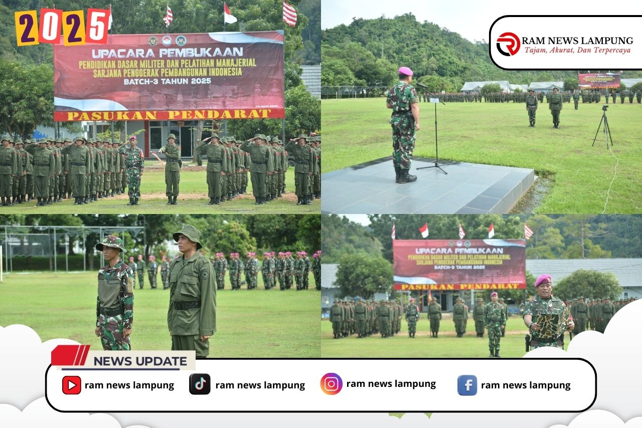 Pesawaran, 14 April 2025 – Sebanyak 199 peserta program Sarjana Penggerak Pembangunan Indonesia (SPPI) mengikuti Pelatihan Dasar Militer Tahun Akademik 2025 yang digelar di Batalyon Infanteri 9 Marinir, Brigif 4 Marinir, Korps Marinir TNI AL, yang berlokasi di Batumenyan, Kecamatan Teluk Pandan, Kabupaten Pesawaran, Lampung.