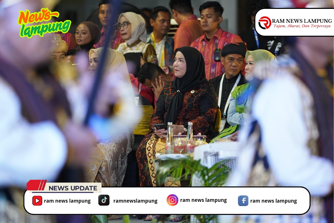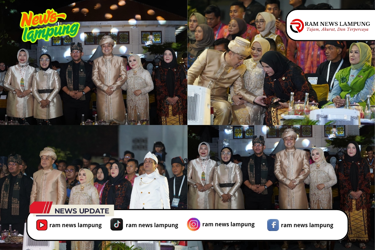 Delegasi Bandar Lampung membawa 100 peserta yang menampilkan kekayaan budaya Lampung melalui busana pengantin adat Lampung Pesisir dan Lampung Pepadun, mencerminkan filosofi “Sang Bumi Khua Jurai”.