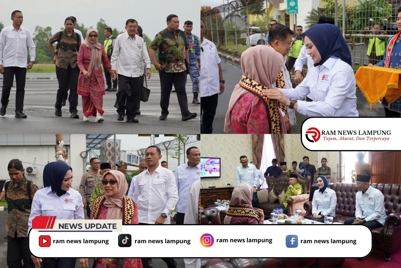 Bandar Lampung, 23 Juni 2025 — Gubernur Lampung, Rahmat Mirzani Djausal, didampingi oleh Ketua Palang Merah Indonesia (PMI) Provinsi Lampung, Purnama Wulan Sari Mirza, menyambut kedatangan Ketua Umum PMI, Bapak H. M. Jusuf Kalla, di Terminal VVIP Bandara Raden Intan II pada Senin (23/06/2025).