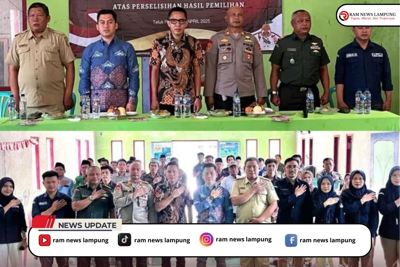 Turut hadir dalam kegiatan tersebut Kapolsek Padang Cermin, Danramil Padang Cermin, Kepala Divisi Hukum dan Pengawasan KPU Kabupaten Pesawaran, serta perwakilan dari Kecamatan Teluk Pandan.