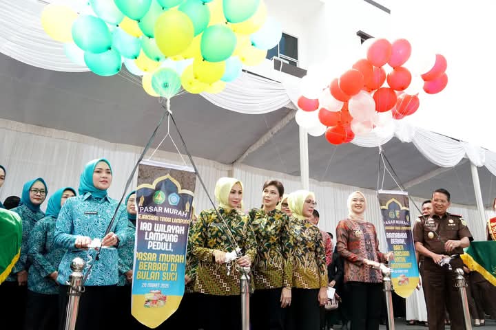 Bandar Lampung – Ketua TP. PKK Provinsi Lampung, Purnama Wulan Sari Mirza, hadir meninjau langsung pelaksanaan pasar murah bertajuk “Ramadan Berkah Kejaksaan Untuk Masyarakat” di halaman Kantor Kejaksaan Tinggi Lampung, Kamis (20/03/2025).