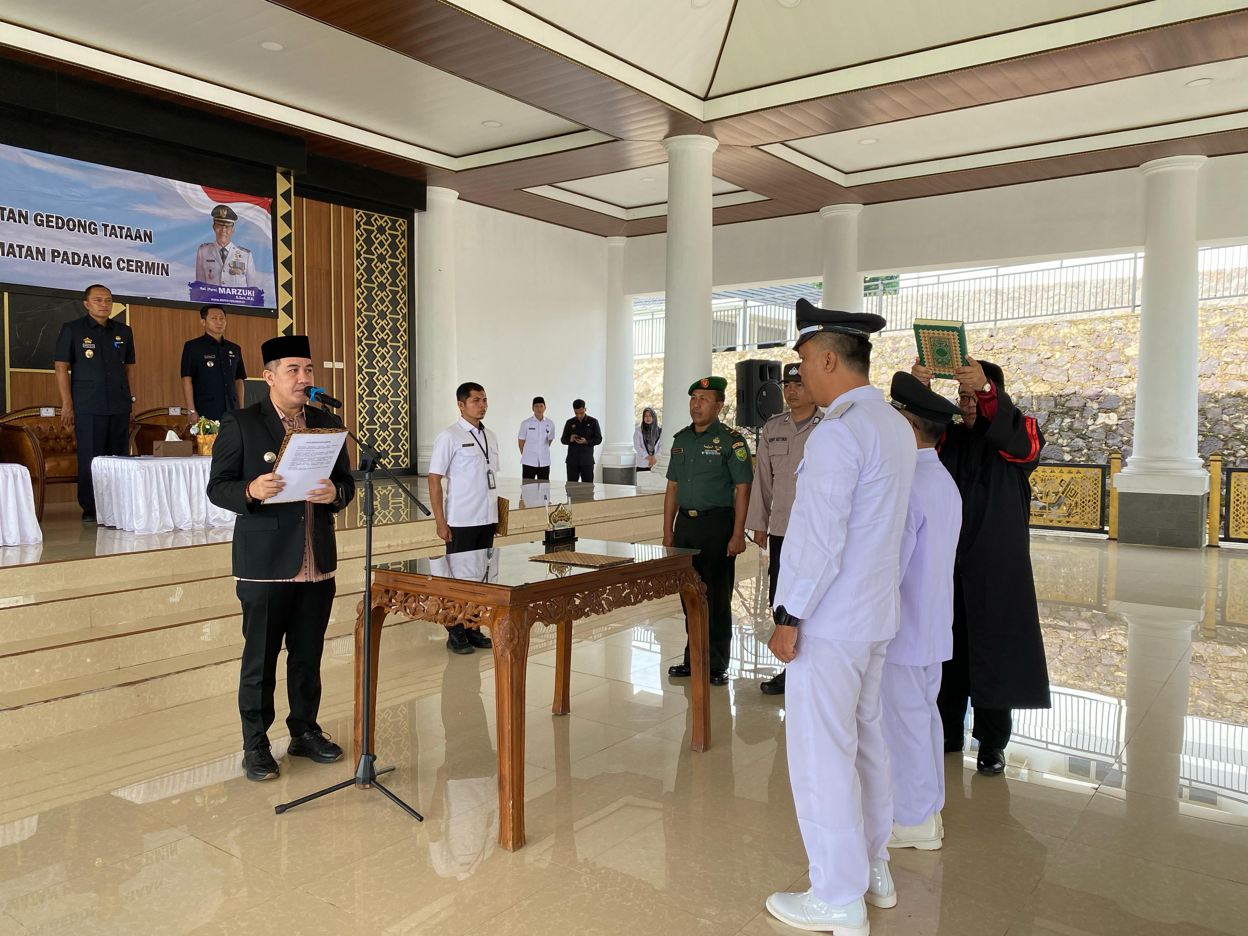 Pesawaran, 15 Januari 2025 – Bupati Pesawaran Dendi Ramadhona melantik Penjabat (Pj) Kepala Desa Khepong Jaya, Kecamatan Padang Cermin serta Pj Kepala Desa Sukaraja, Kecamatan Gedong Tataan, pada Rabu (19/3/2025). Prosesi pelantikan berlangsung di GSG Lamban Agung, Komplek Rumah Dinas Bupati Pesawaran, dan dihadiri oleh jajaran pejabat daerah, di antaranya Asisten Pemerintahan dan Kesra, Inspektur, Kepala Dinas terkait, para Camat, serta unsur perangkat desa.