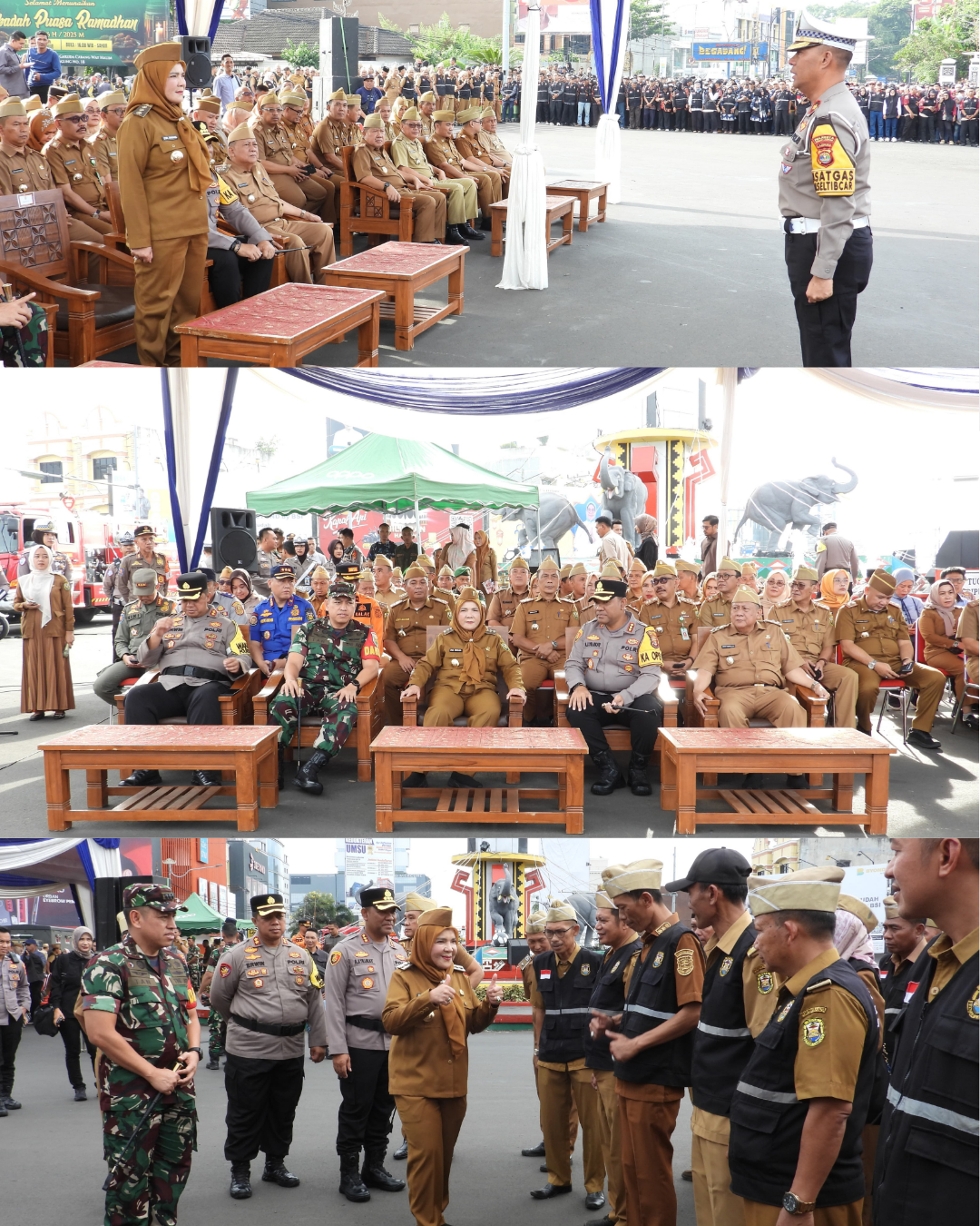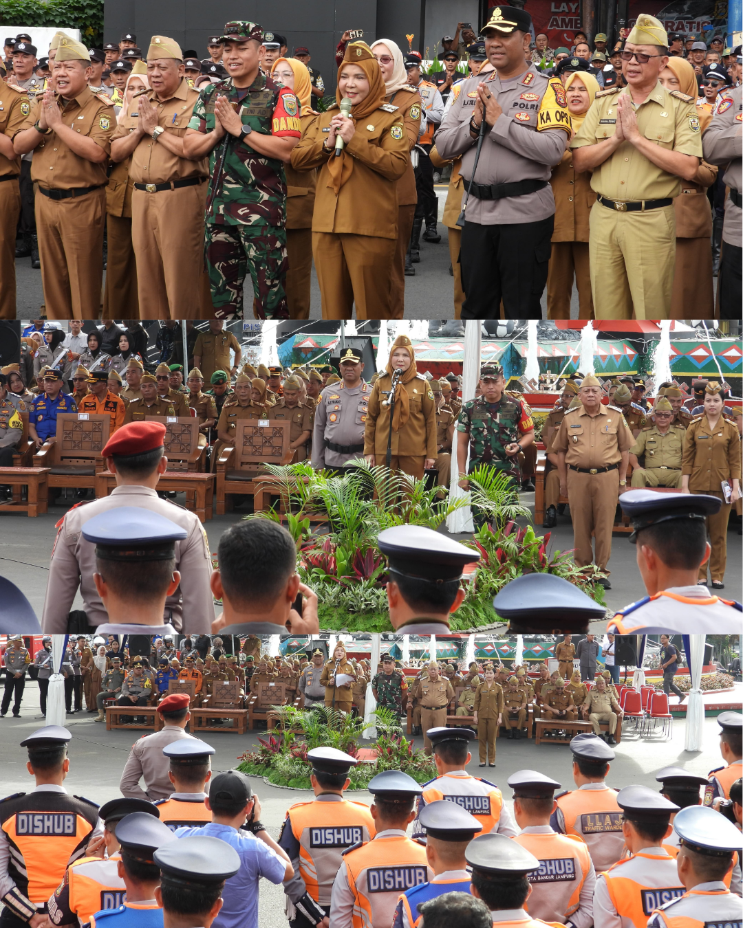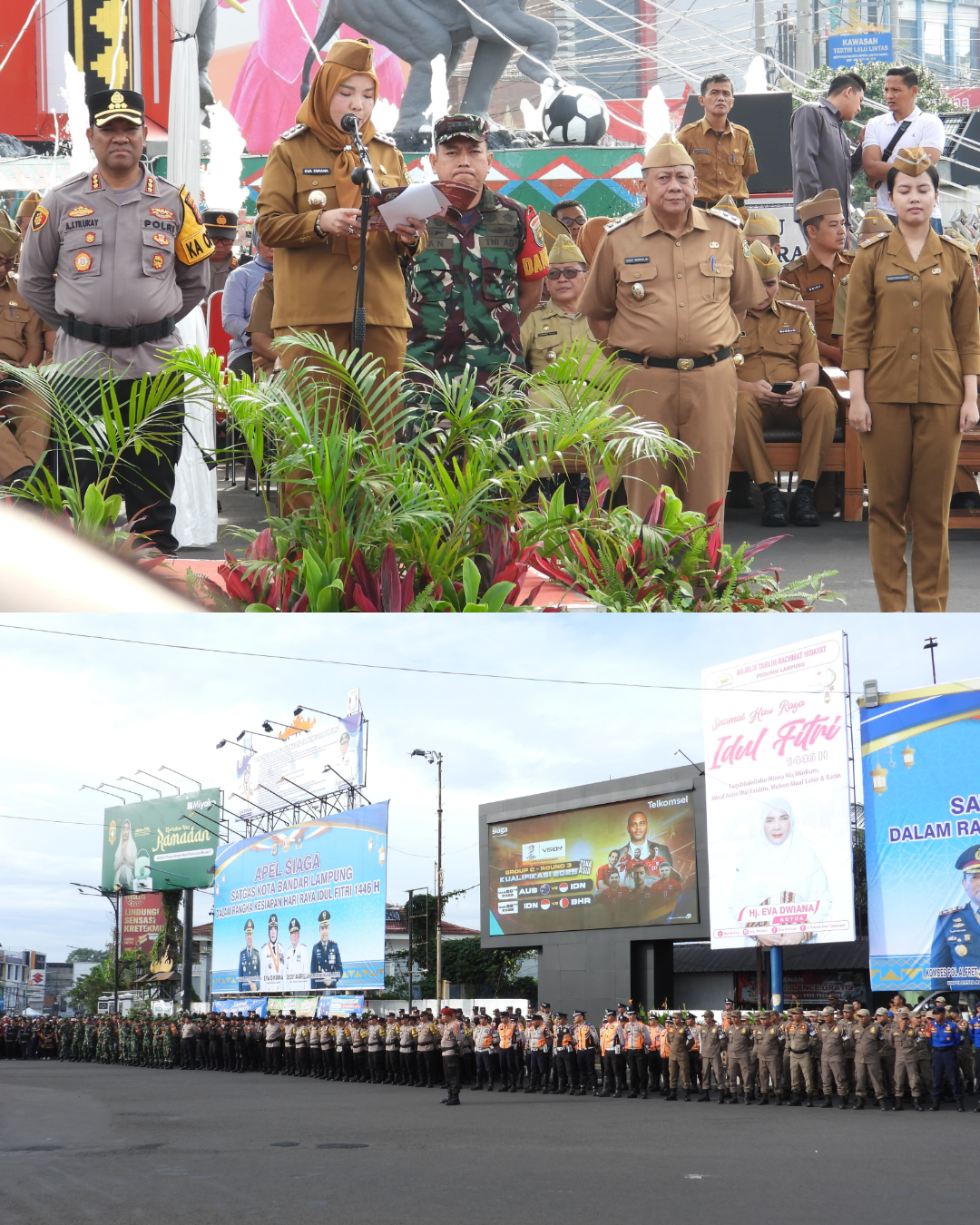 Bandar Lampung — Pemerintah Kota Bandar Lampung bersama Forkopimda Kota Bandar Lampung menggelar Apel Siaga Satgas Idulfitri 1446 H di Tugu Adipura, pada Sabtu (29/3/2025). Apel ini dihadiri oleh ribuan pasukan yang tergabung dalam Satgas Idulfitri, yang terdiri dari berbagai unsur pemerintahan kota, termasuk Linmas, Kaling, RT, Lurah, serta TNI-Polri.