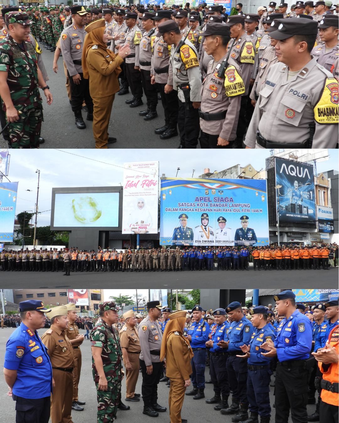 Wali Kota Bandar Lampung, Eva Dwiana, menyampaikan bahwa apel ini bertujuan untuk memastikan kesiapan keamanan Kota Bandar Lampung menjelang perayaan Lebaran. “Semua unsur, mulai dari Kaling hingga Babinsa, Bhabinkamtibmas, semuanya hadir untuk diberikan arahan,” ujarnya.