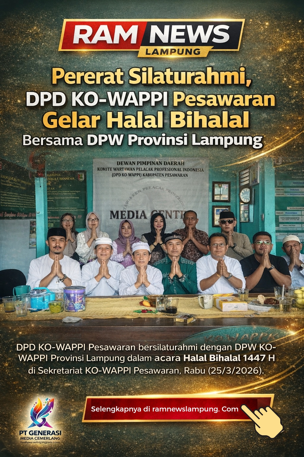 PESAWARAN – Dalam suasana hangat bulan Syawal 1447 Hijriah, Dewan Pimpinan Daerah Komite Wartawan Pelacak Profesional Indonesia (DPD KO-WAPPI) Kabupaten Pesawaran bersama Dewan Pimpinan Wilayah (DPW) KO-WAPPI Provinsi Lampung menggelar kegiatan Halal Bihalal.