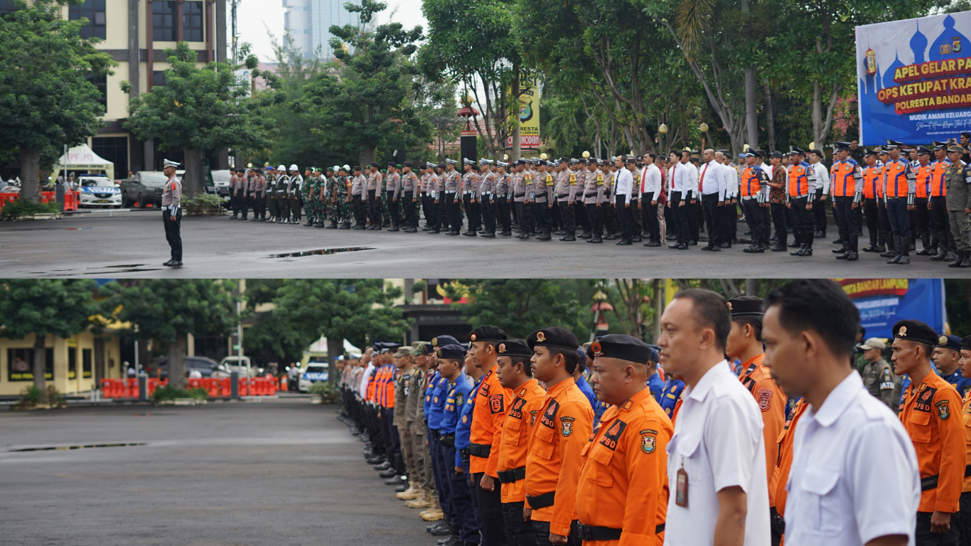 Bandar Lampung — Walikota Bandar Lampung Hj. Eva Dwiana Memimpin Apel Gelar Pasukan Operasi Ketupat Krakatau 2025 di halaman Polresta Bandar Lampung, Kamis 20 Maret 2025.